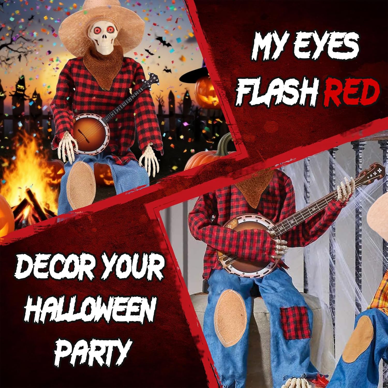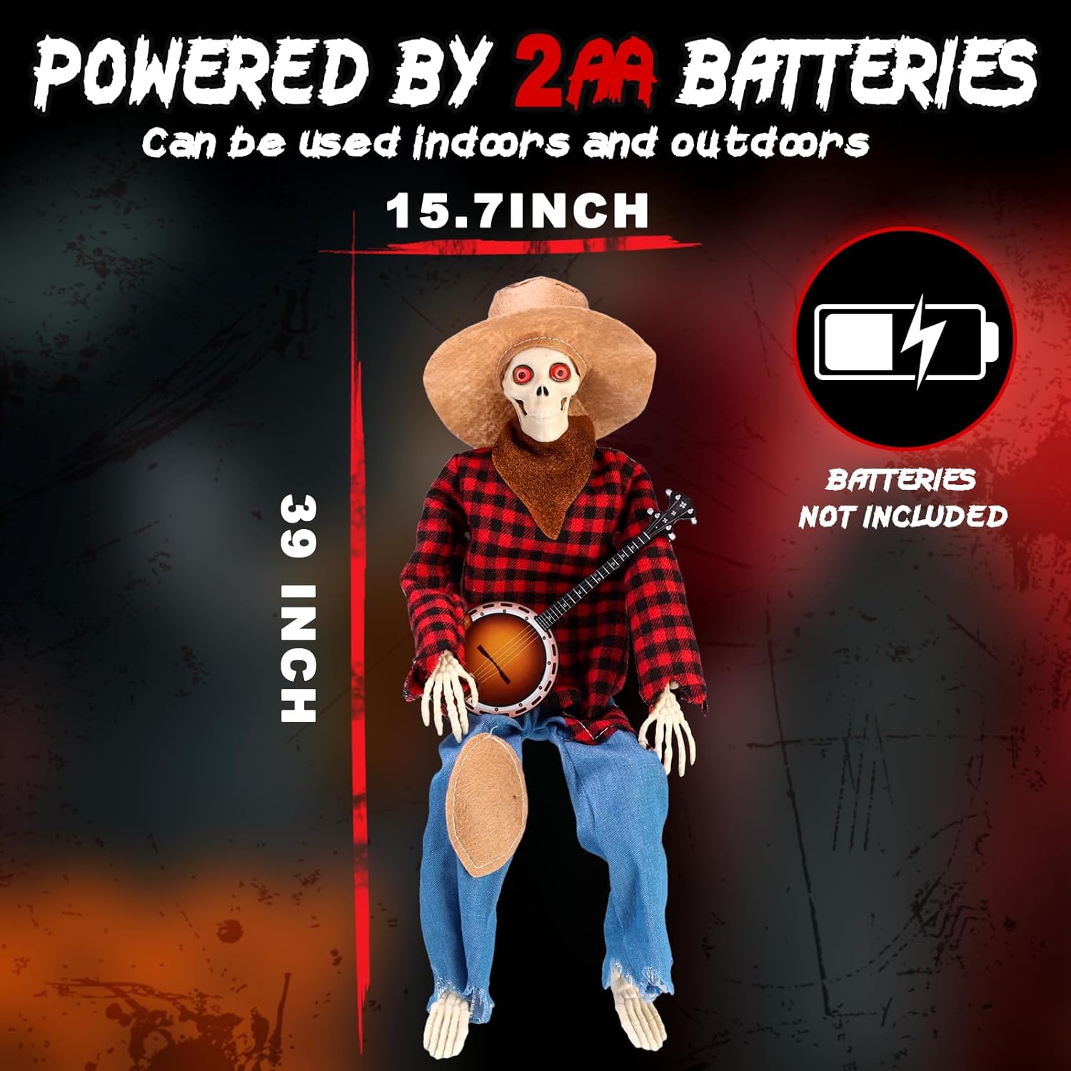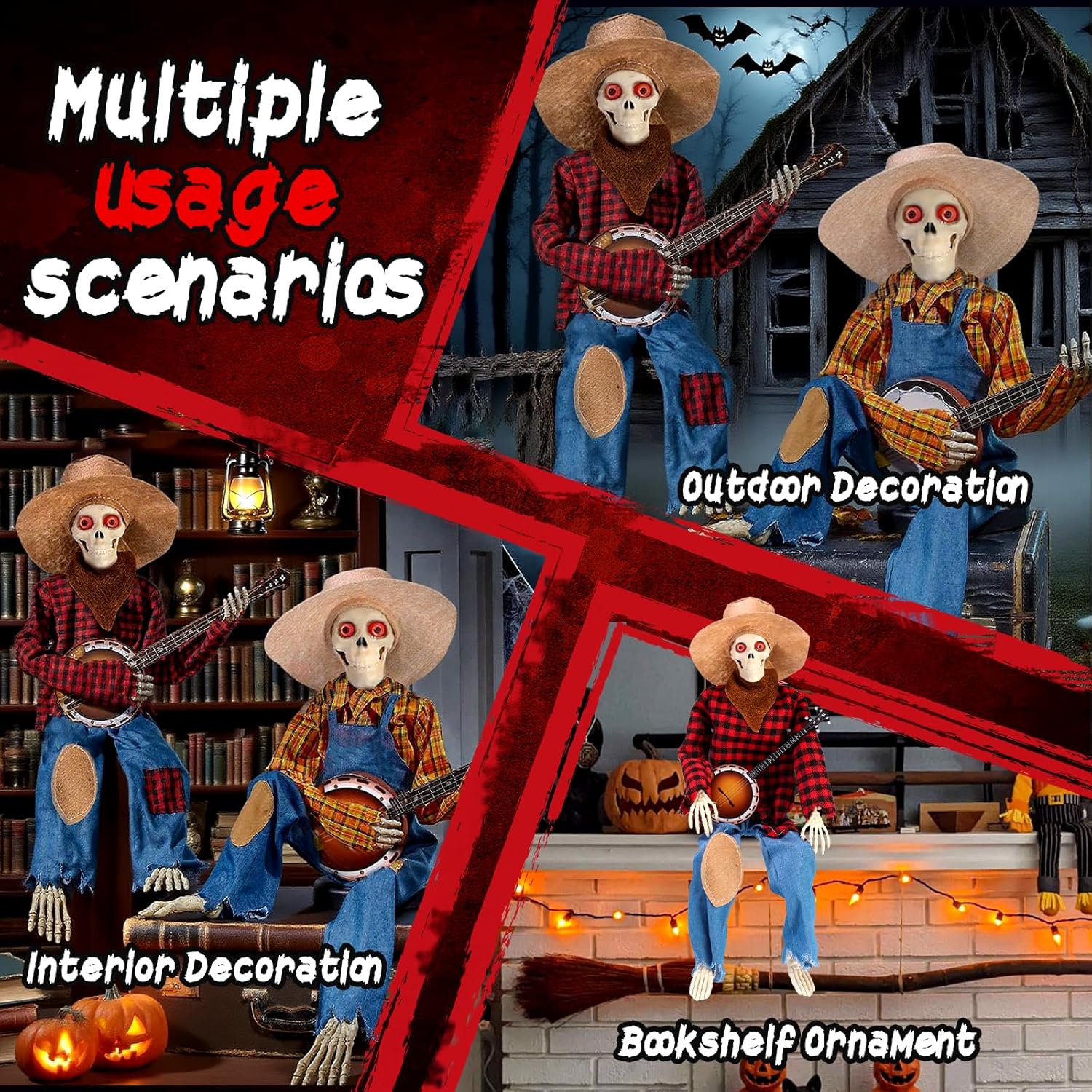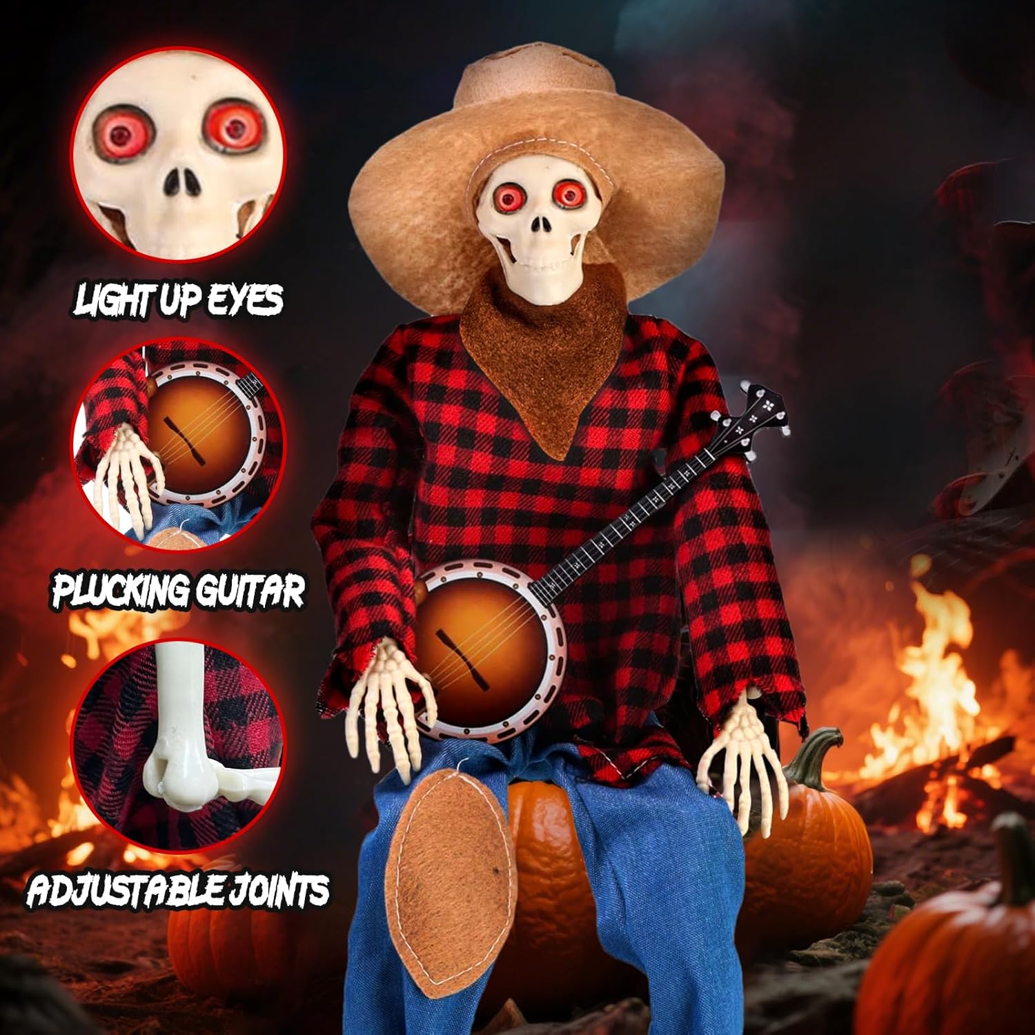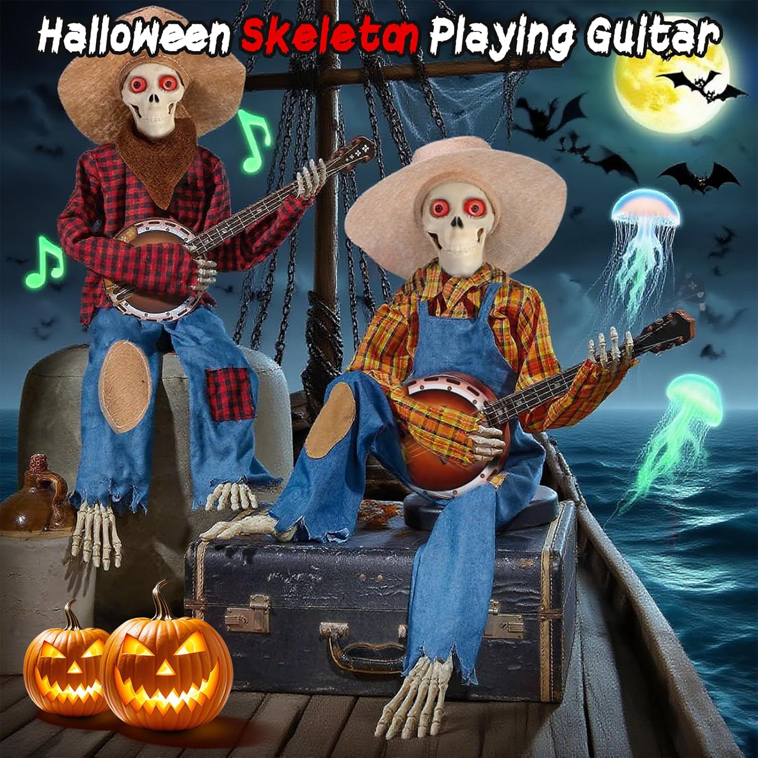 Turn your porch into a stage with these animated banjo-playing skeletons. Their humorous head-bobbing and strumming fill your nights with laughter, making every gathering a memorable event. Perfect for family fun and Halloween parties.
